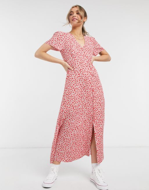 Nobody S Child Midi Dress With Buttons In Ditsy Rose Print Asos